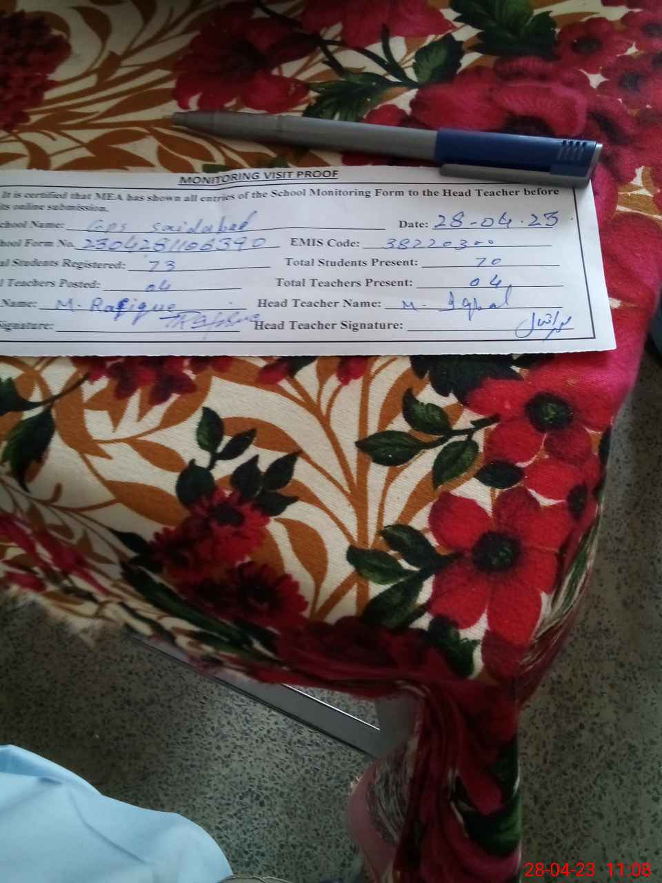 | EMIS Code: 38220300 | Name of School: GPS SAIDABAD DAKHLI SHAH WALA JANUBI | |||