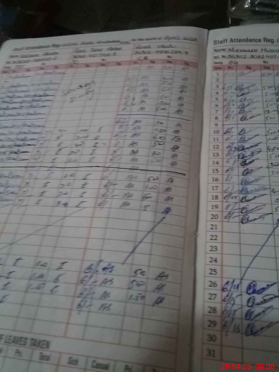 | CNIC | Full Name | Designation | R/C | Absence During Last Calender Month |