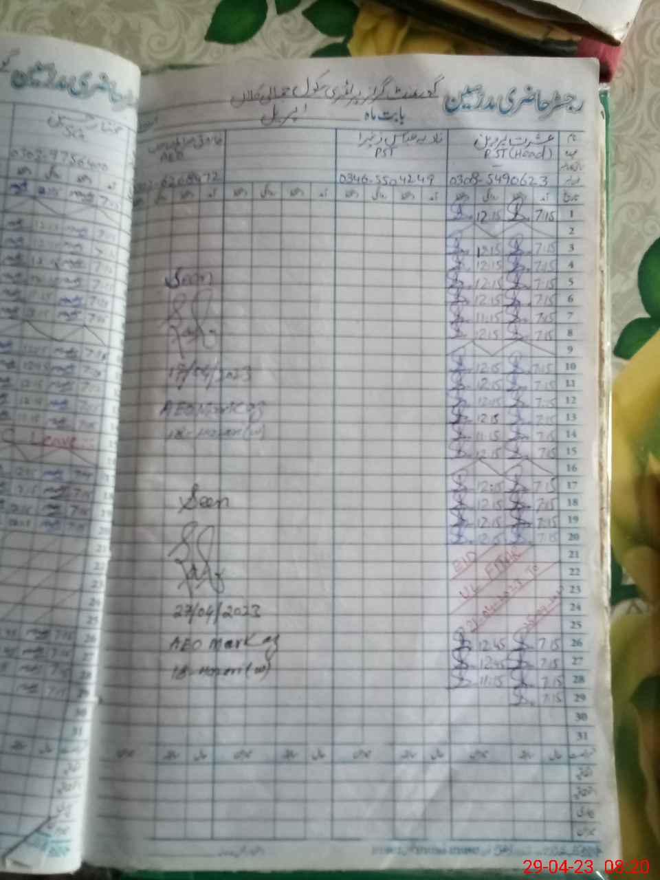 | Name: Su**** Af**** Designation: (School Headmaster's/Headmistress's) PST Phone/Cell Number: 03**** |