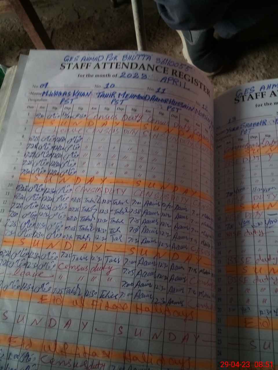 | Monitoring Date: 29-04-2023 | Start Time: 29-04-2023 08:36 AM | End Time: 29-04-2023 08:54 AM | Name of MEA: MU**** YA**** | |