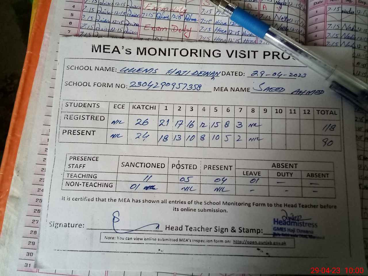 | EMIS Code: 36410425 | Name of School: GMES HAJI DIWANA, SARAI SIDHU | |||