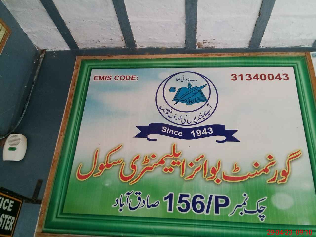 | EMIS Code: 31340043 | Name of School: GES CHAK NO 156/P SADIQABAD | |||