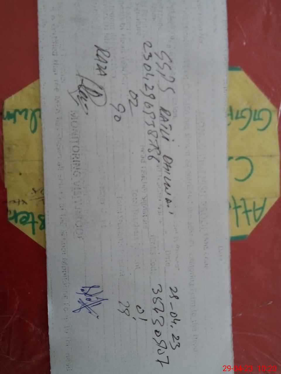 | Monitoring Date: 29-04-2023 | Start Time: 29-04-2023 09:27 AM | End Time: 29-04-2023 10:22 AM | Name of MEA: Ra**** Hu**** Gi**** | |