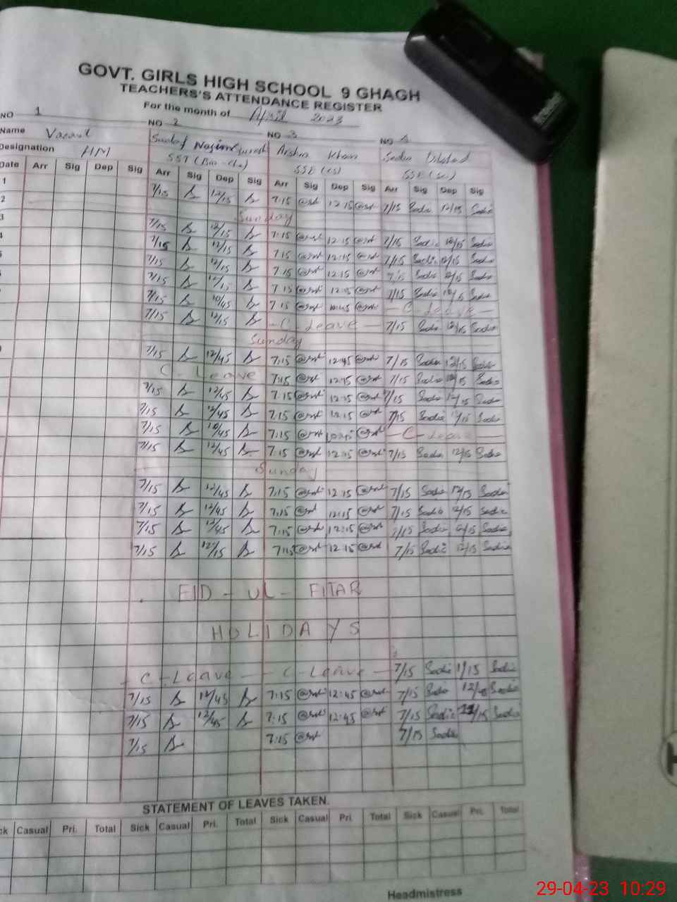 | EMIS Code: 36410134 | Name of School: GGHS 9 GHAGH, ABDUL HAKIM | |||