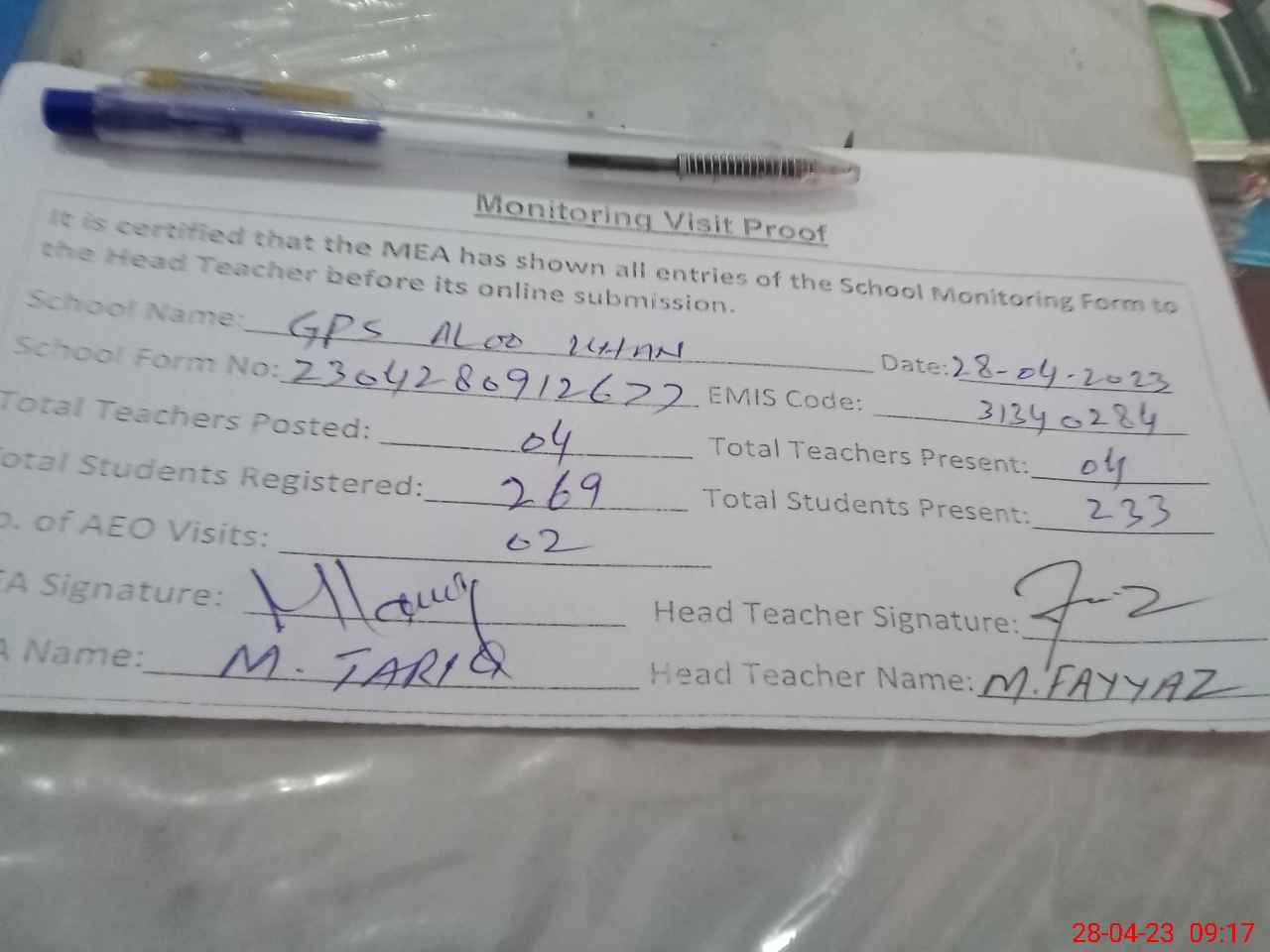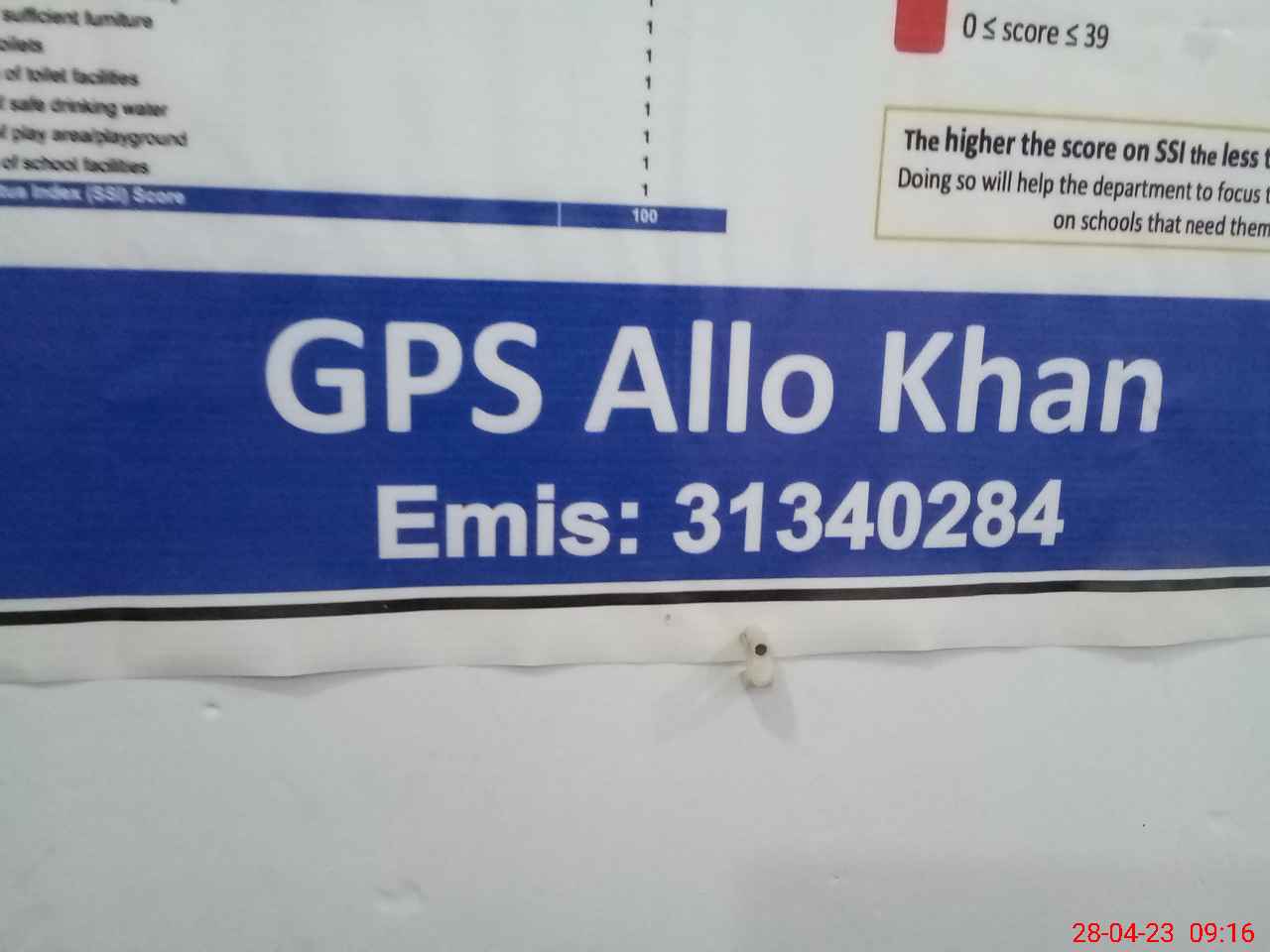 | EMIS Code: 31340284 | Name of School: GPS ALLO KHAN | |||
