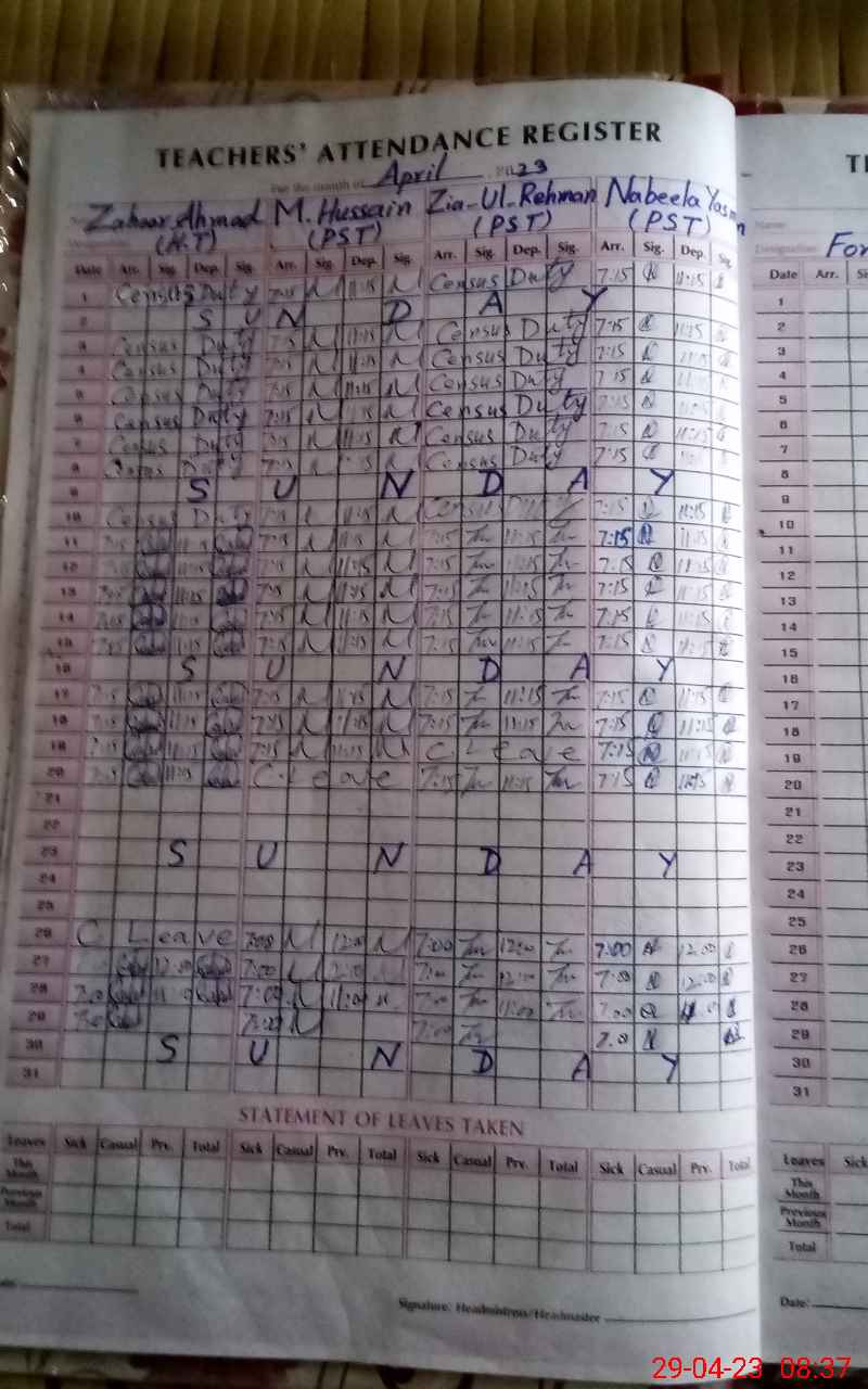 | Name: Za**** Ah**** Designation: (School Headmaster's/Headmistress's) PST Phone/Cell Number: 03**** |