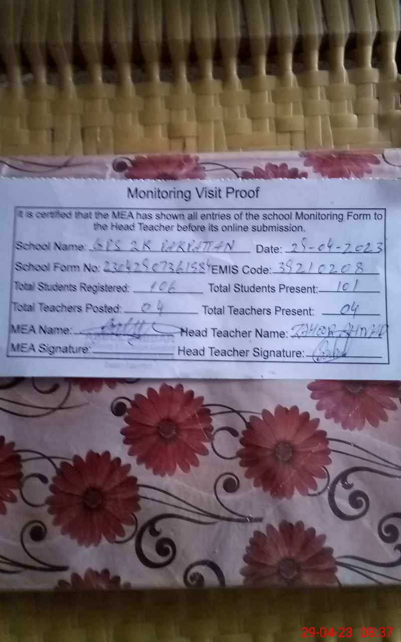 | EMIS Code: 39210208 | Name of School: GPS 2 KB PO PAKPATTAN | |||