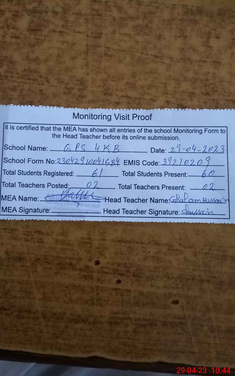 | EMIS Code: 39210209 | Name of School: GPS 4 KB PO PAKPATTAN | |||