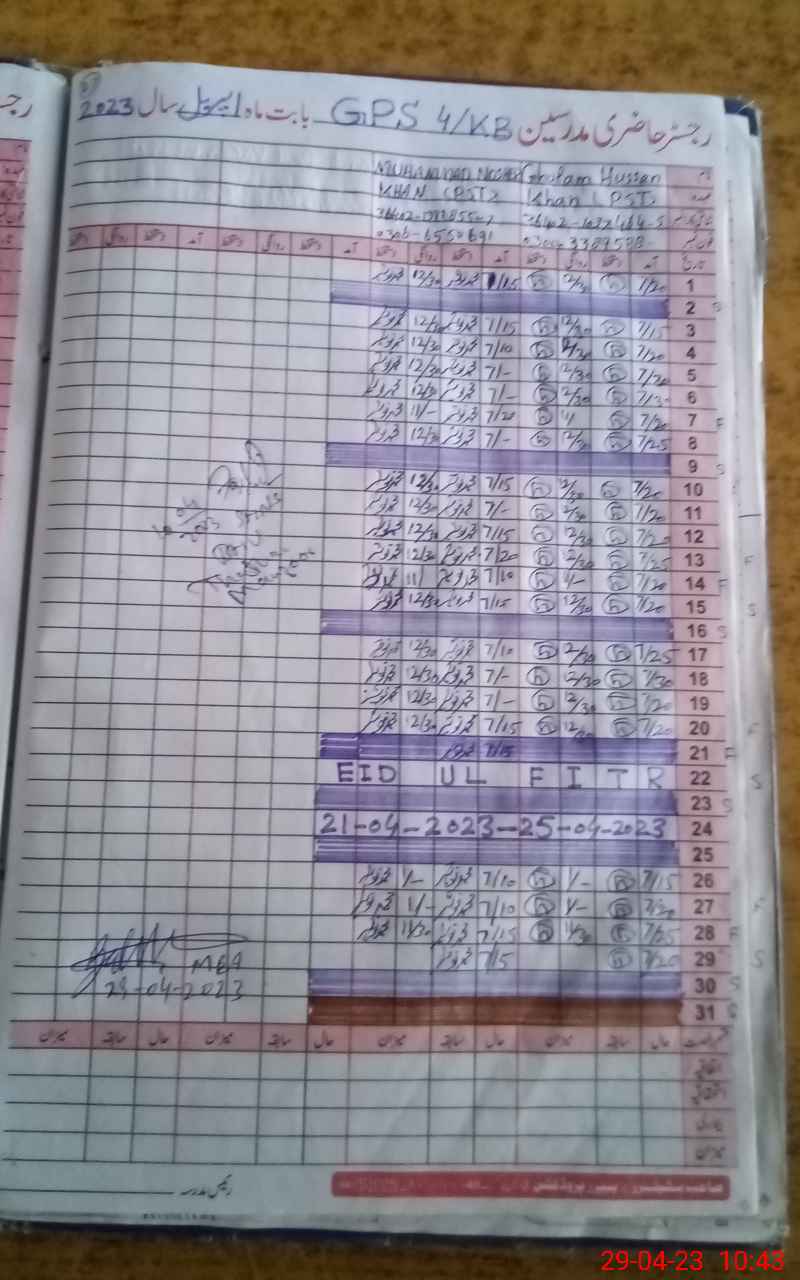 | Name: GH**** HU**** Designation: (School Headmaster's/Headmistress's) PST Phone/Cell Number: 03**** |