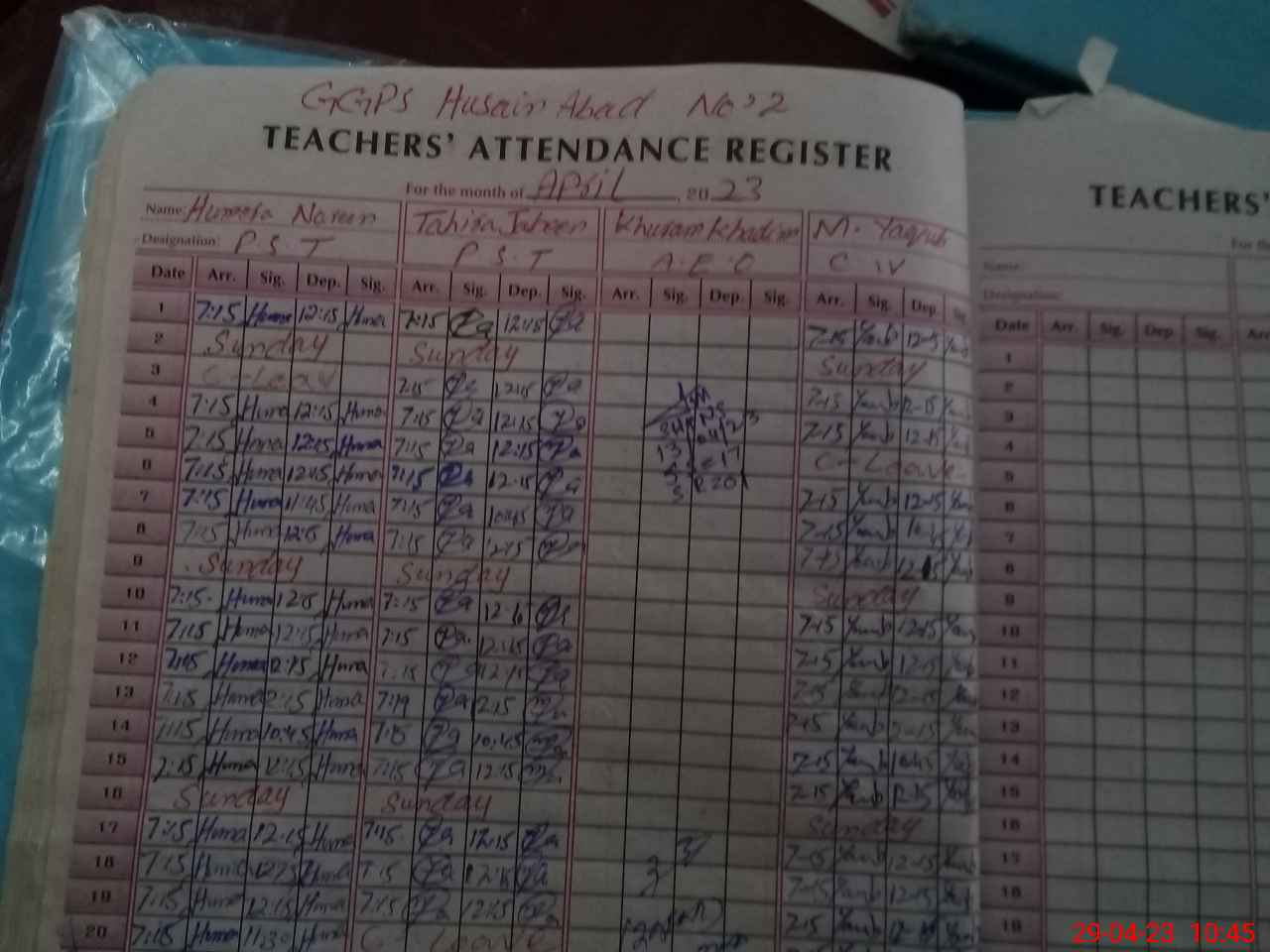 | Name: HU**** NO**** Designation: (School Headmaster's/Headmistress's) PST Phone/Cell Number: 03**** |