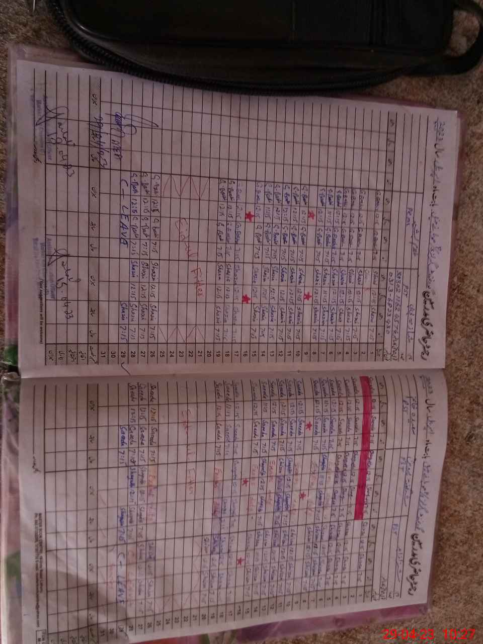 | Leave | Duty | Absent | Maternity | Medical | Ex- Pak |