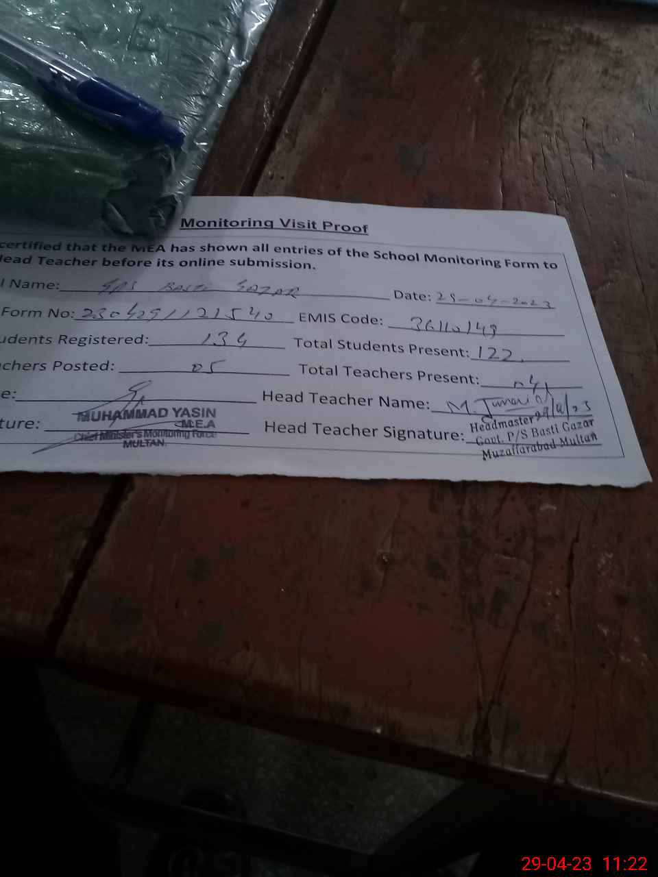 | EMIS Code: 36110149 | Name of School: GPS BASTI GHAZAR P/O MUZAFAARABAD | |||