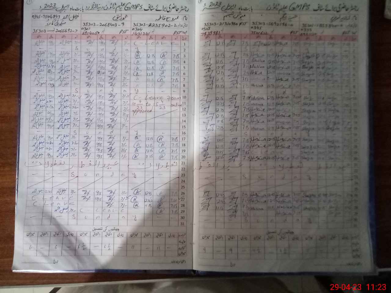 | CNIC | Full Name | Designation | R/C | Absence During Last Calender Month |