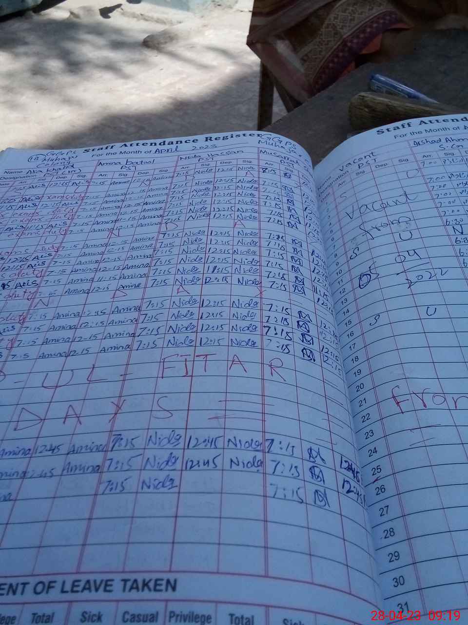 | Leave | Duty | Absent | Maternity | Medical | Ex- Pak |