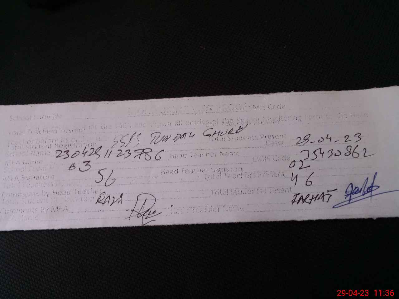 | Attendance Register | Head Teacher | MEA with School | Visit Proof |