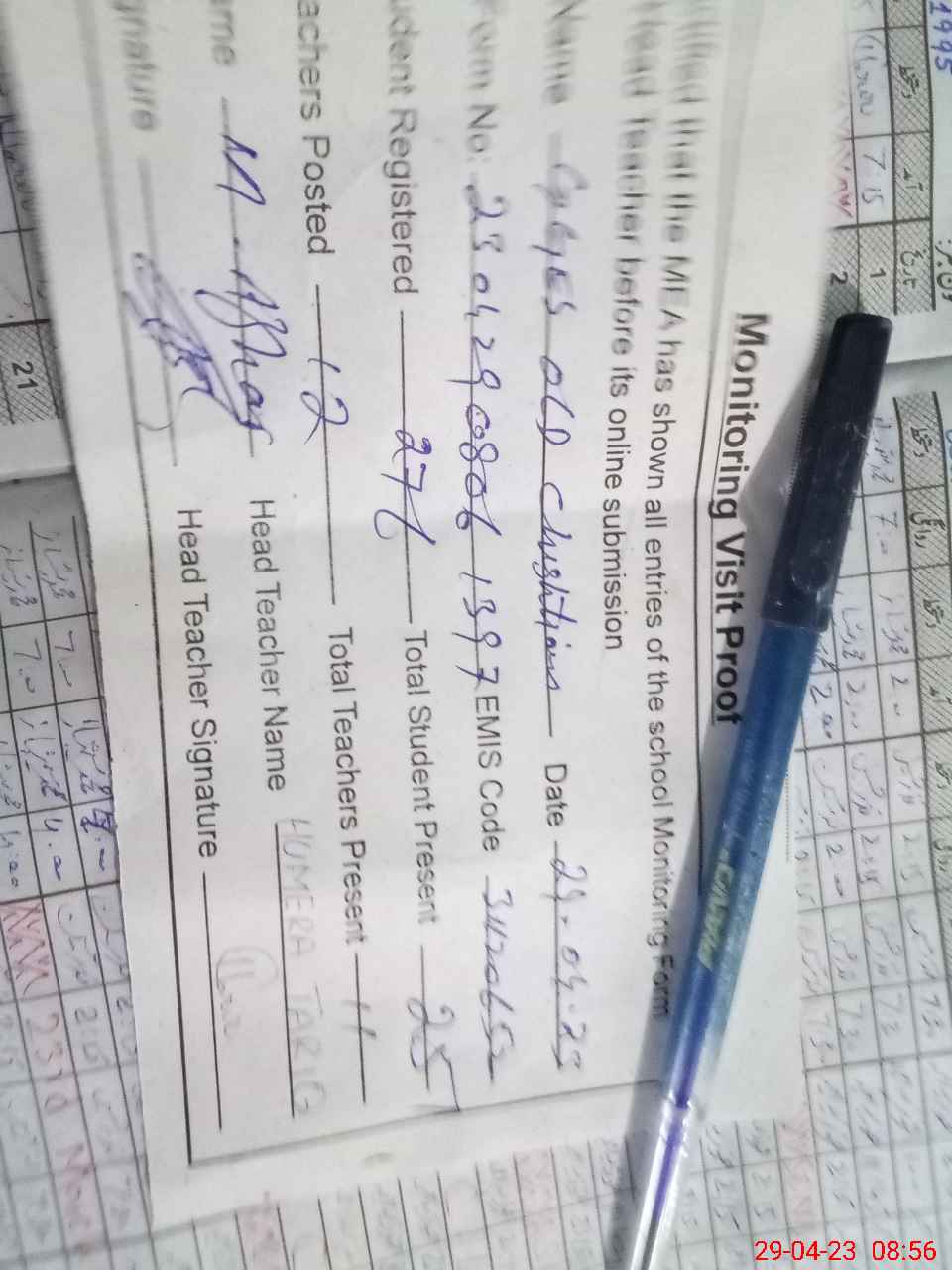 | EMIS Code: 31120652 | Name of School: GGES OLD CHISHTIAN | |||