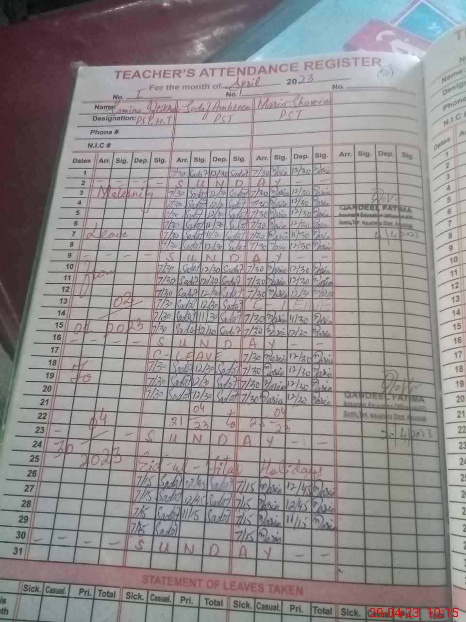 | 37**** | Sa**** If**** | PST | Regular | 31 | 0 | 0 | 31 | 0 | 0 | 0 | 0 | 0 | Maternity |