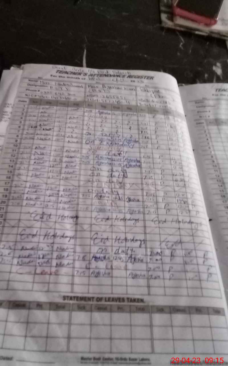 | Name: Ra**** Ir**** Designation: (School Headmaster's/Headmistress's) PST Phone/Cell Number: 03**** |