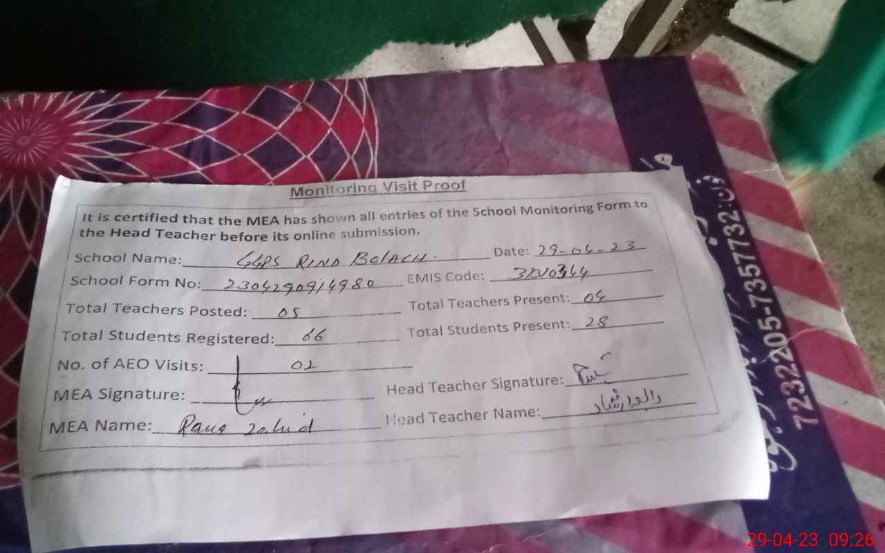 | EMIS Code: 31310344 | Name of School: GGPS RIND BULUCH | |||