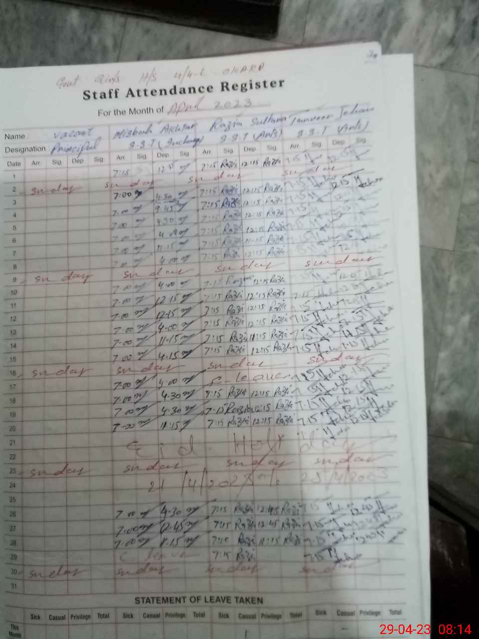 | 35**** | Ra**** Ba**** | EST(GENERAL) | Temporary | 1 | 0 | 0 | 0 | 0 | 0 | 0 | 0 | 1 | Casual |