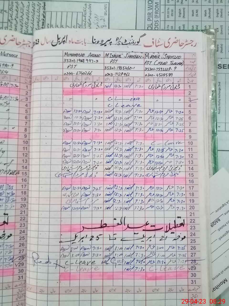 | Name: Mu**** Sa**** Designation: (School Headmaster's/Headmistress's) PST Phone/Cell Number: 03**** |