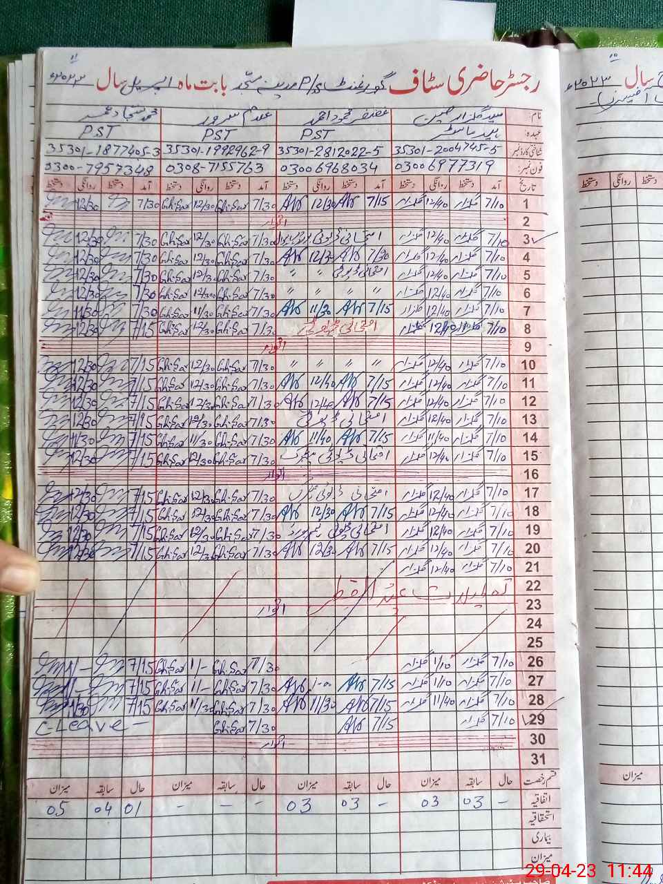 | CNIC | Full Name | Designation | R/C | Absence During Last Calender Month |