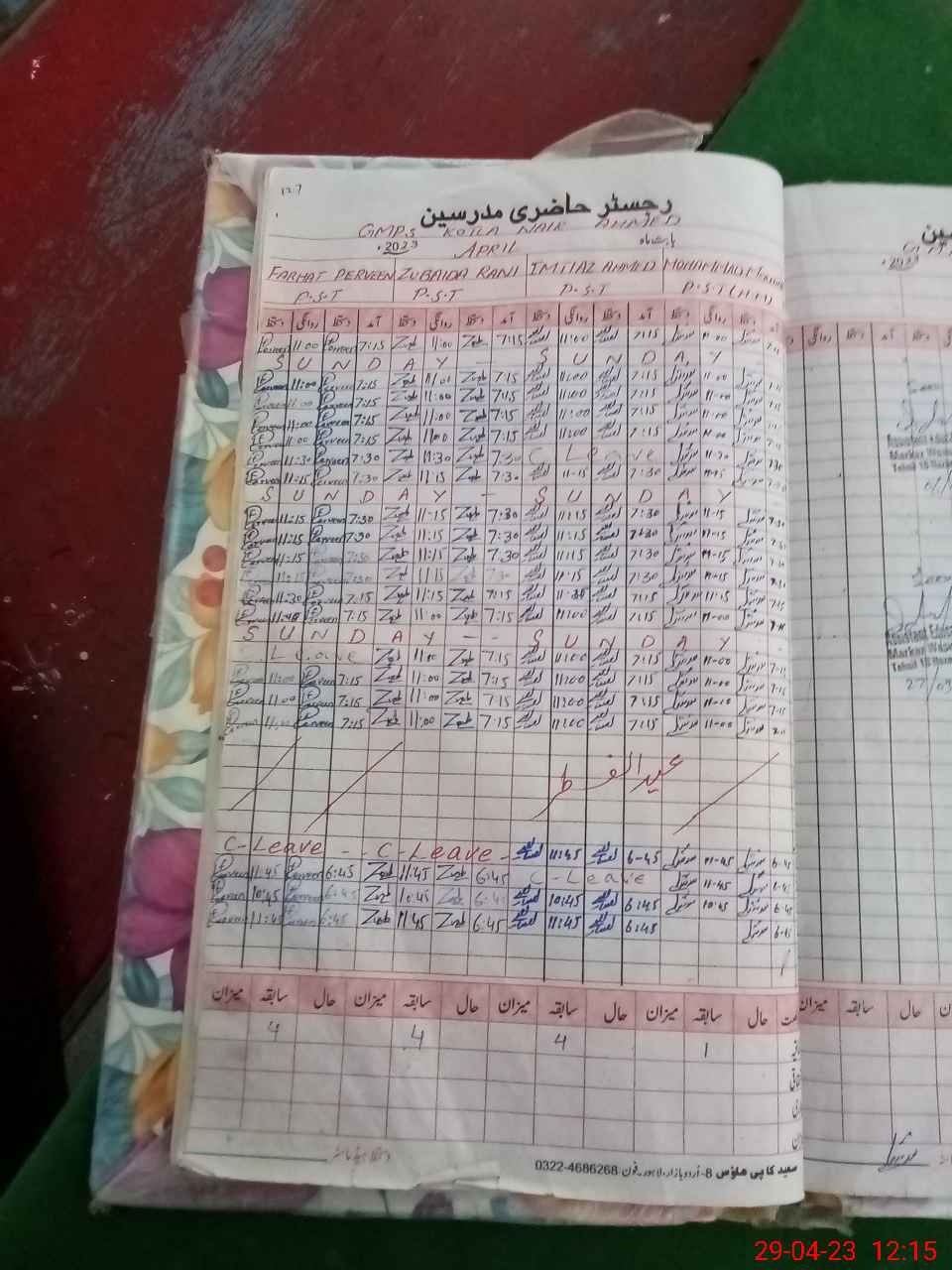 | CNIC | Full Name | Designation | R/C | Absence During Last Calender Month |