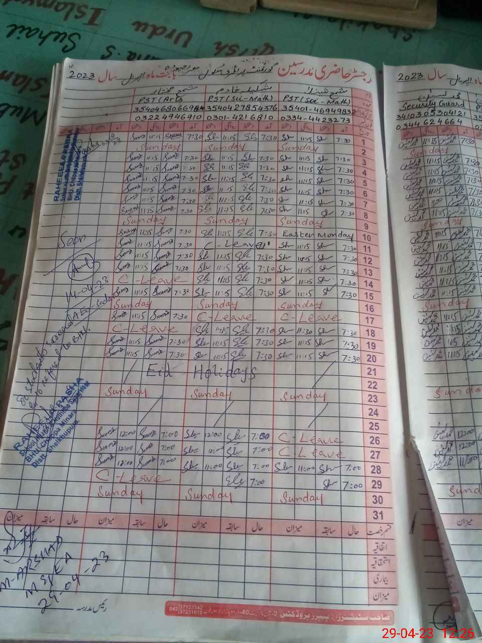 | Name: MU**** AH**** Designation: (School Headmaster's/Headmistress's) PST Phone/Cell Number: 03**** |