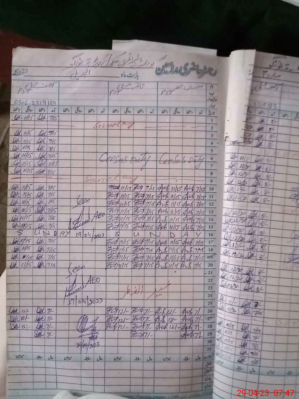| Name: AH**** UL**** Designation: (School Headmaster's/Headmistress's) PST Phone/Cell Number: 03**** |