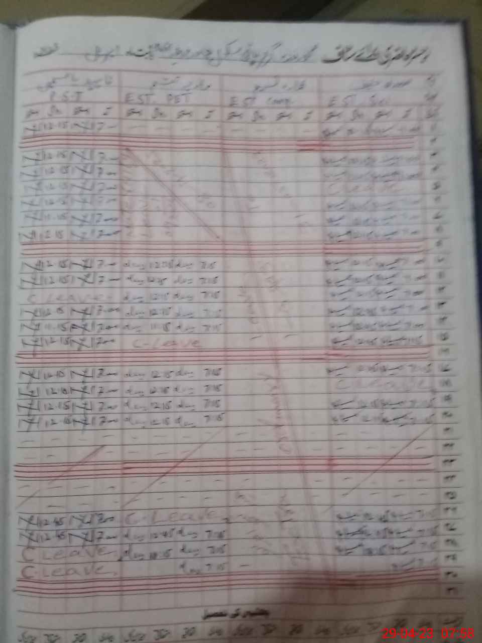 | CNIC | Full Name | Designation | R/C | Absence During Last Calender Month |
