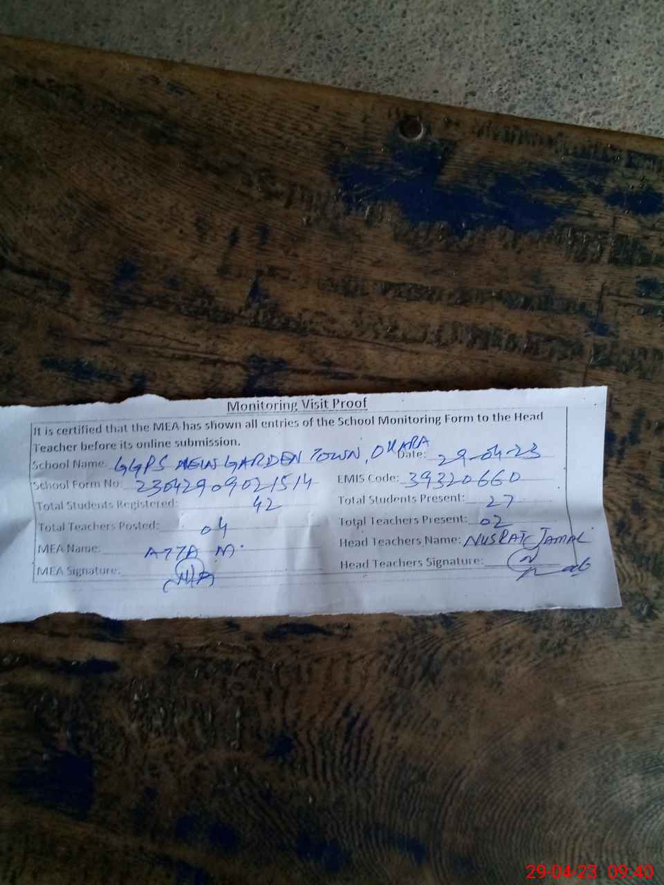 | EMIS Code: 39320660 | Name of School: GGPS NEW GARDEN TOWN OKARA | |||