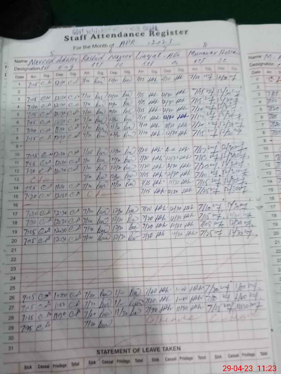 | 35**** | Ra**** Hu**** | PST | Regular | 0 | 31 | 0 | 0 | 0 | 0 | 0 | 0 | 0 | Casual |