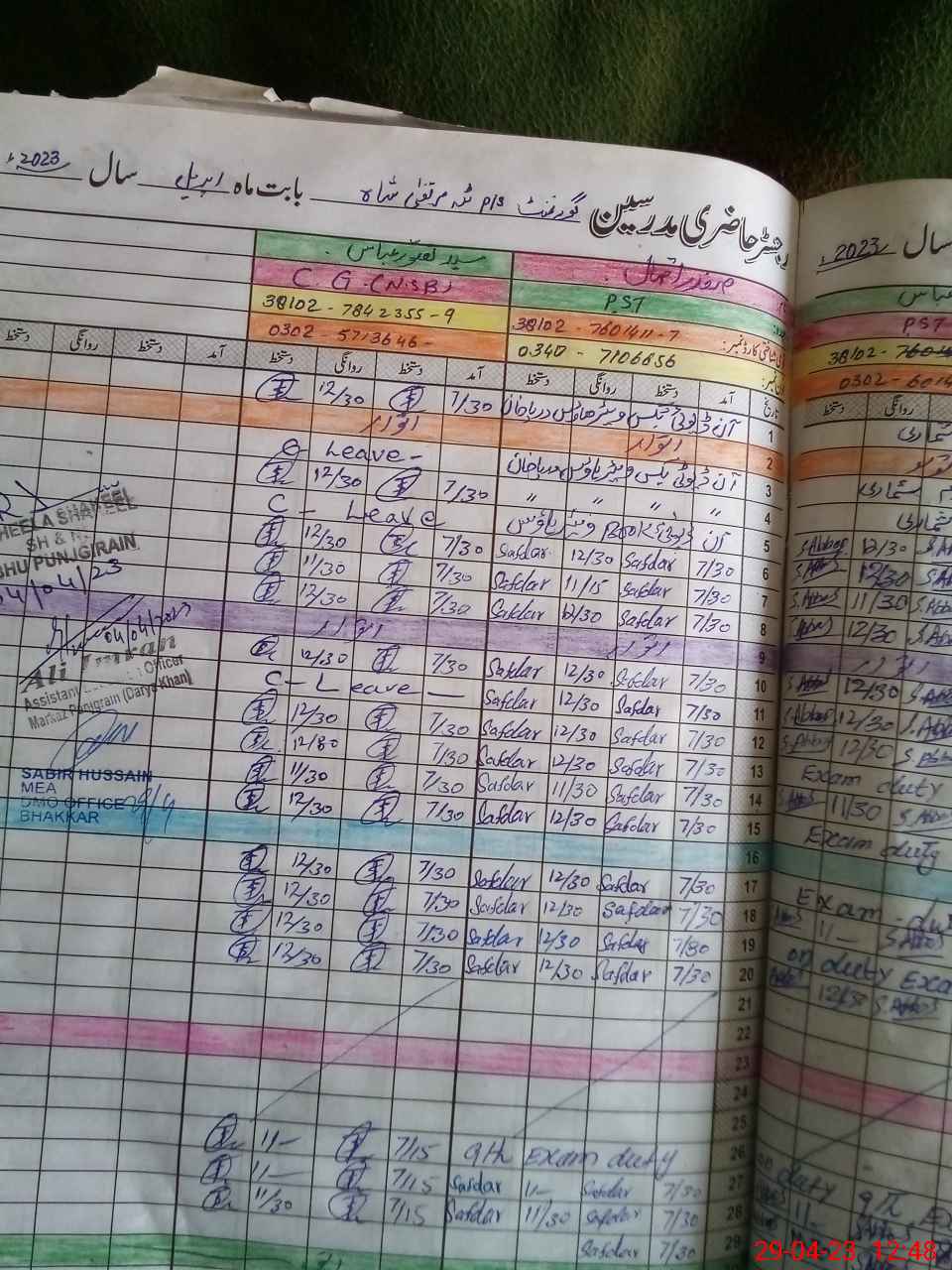 | Name: Sh**** Ab**** Designation: (School Headmaster's/Headmistress's) PST Phone/Cell Number: 03**** |