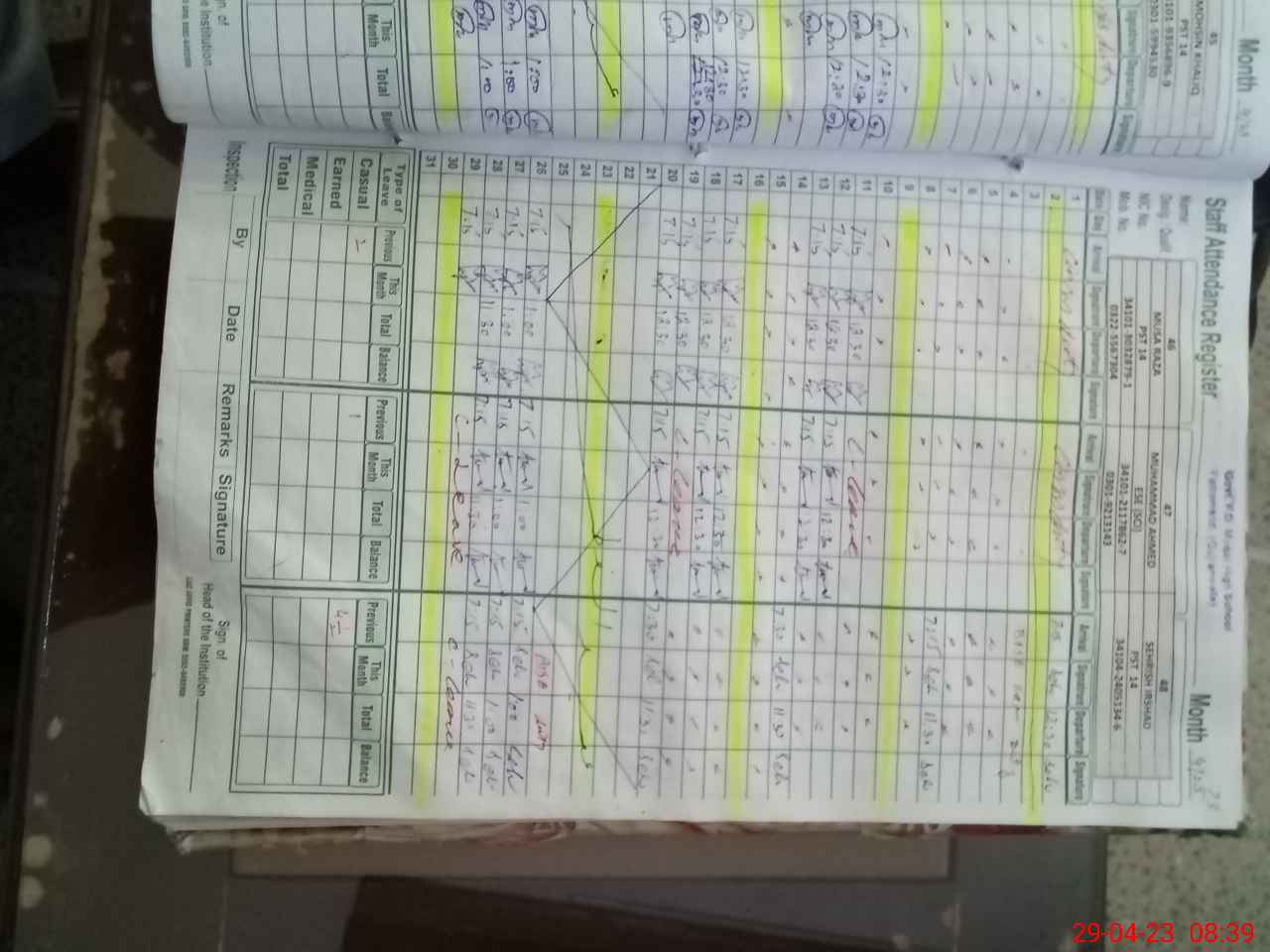 | CNIC | Full Name | Designation | R/C | Absence During Last Calender Month |