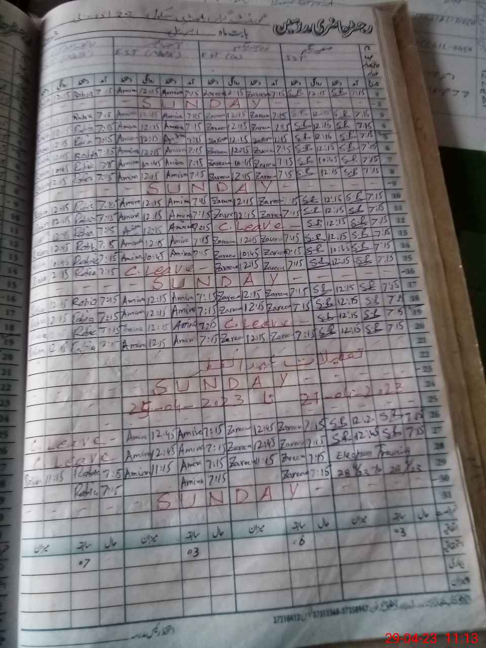 | CNIC | Full Name | Designation | R/C | Absence During Last Calender Month |
