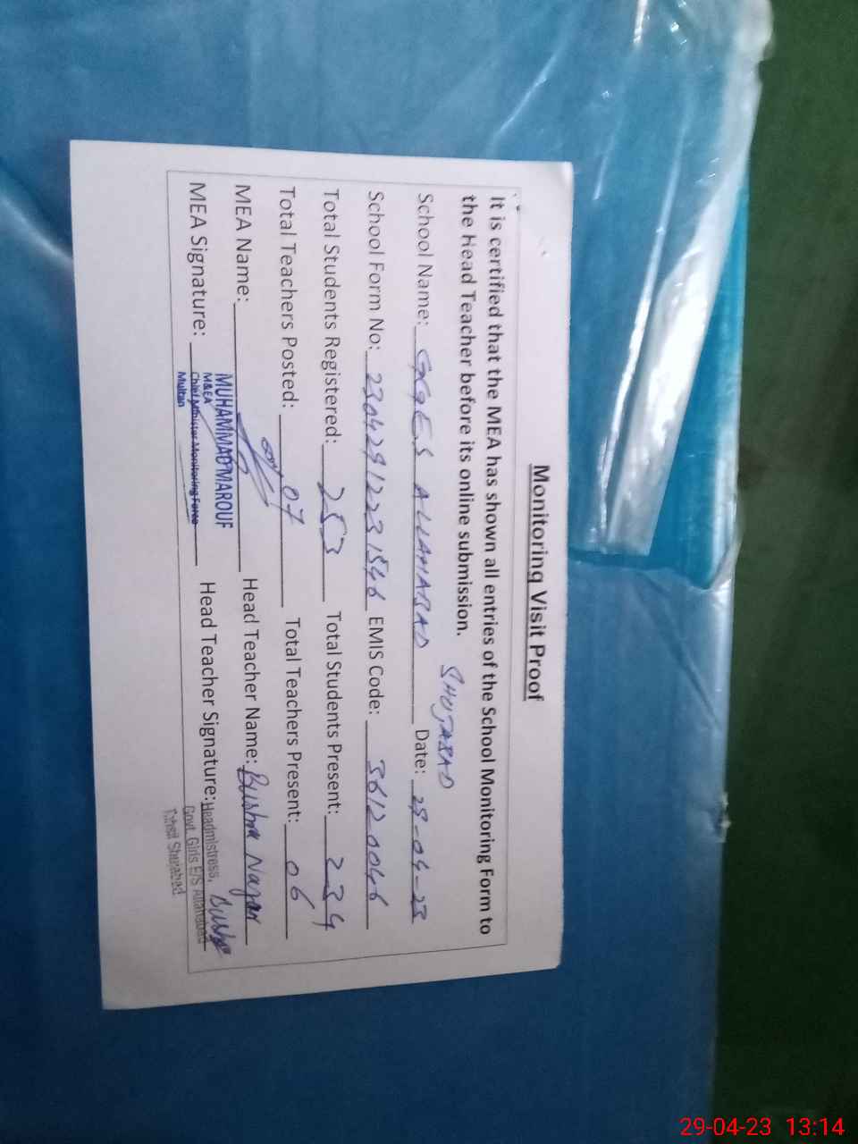 | EMIS Code: 36120046 | Name of School: GGES ALLAH ABAD | |||