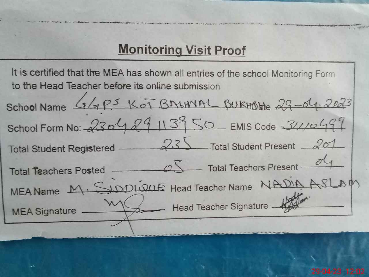 | EMIS Code: 31110499 | Name of School: GGPS KOT BAHAWAL BUKHASH | |||