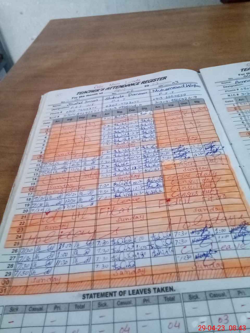 | Name: Sh**** Im**** Designation: (School Headmaster's/Headmistress's) PST Phone/Cell Number: 03**** |
