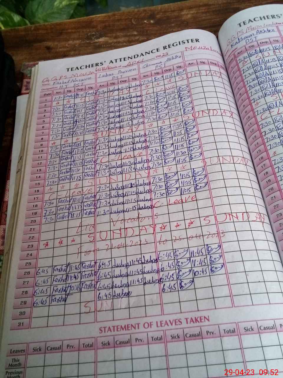 | Leave | Duty | Absent | Maternity | Medical | Ex- Pak |