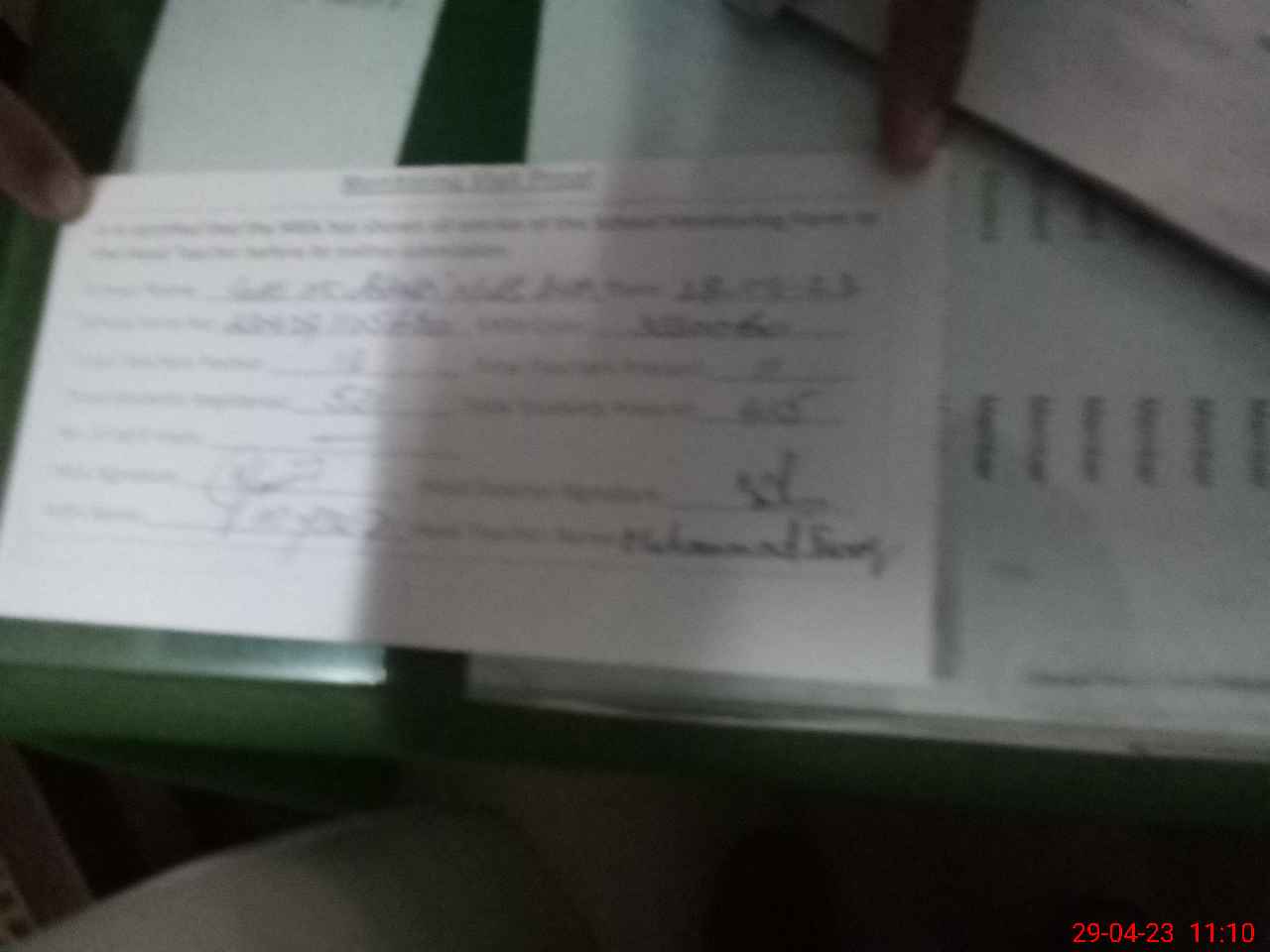 | Name: Mu**** Iq**** Yo**** Designation: (School Headmaster's/Headmistress's) Hm Phone/Cell Number: 03**** |