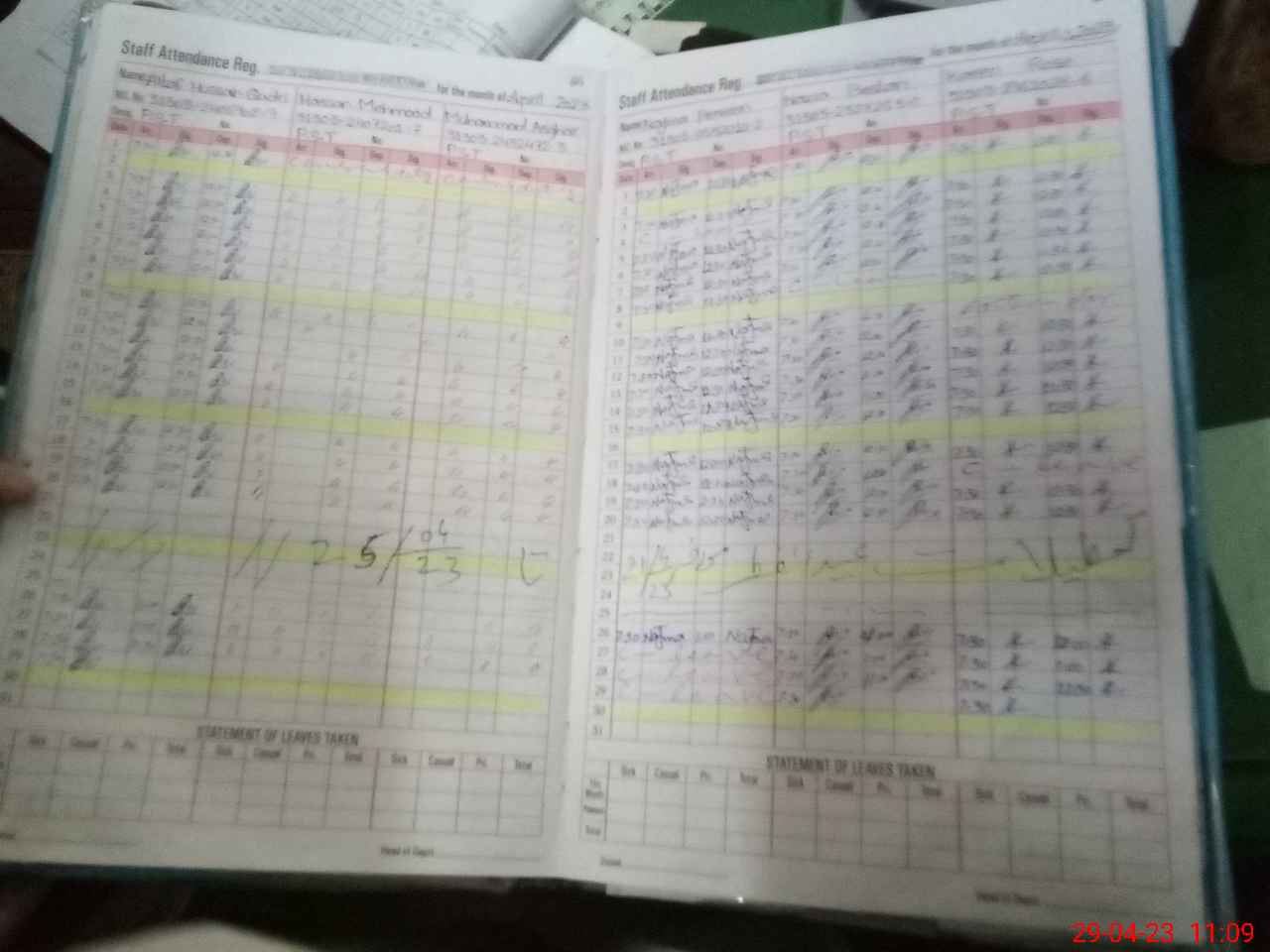 | CNIC | Full Name | Designation | R/C | Absence During Last Calender Month |