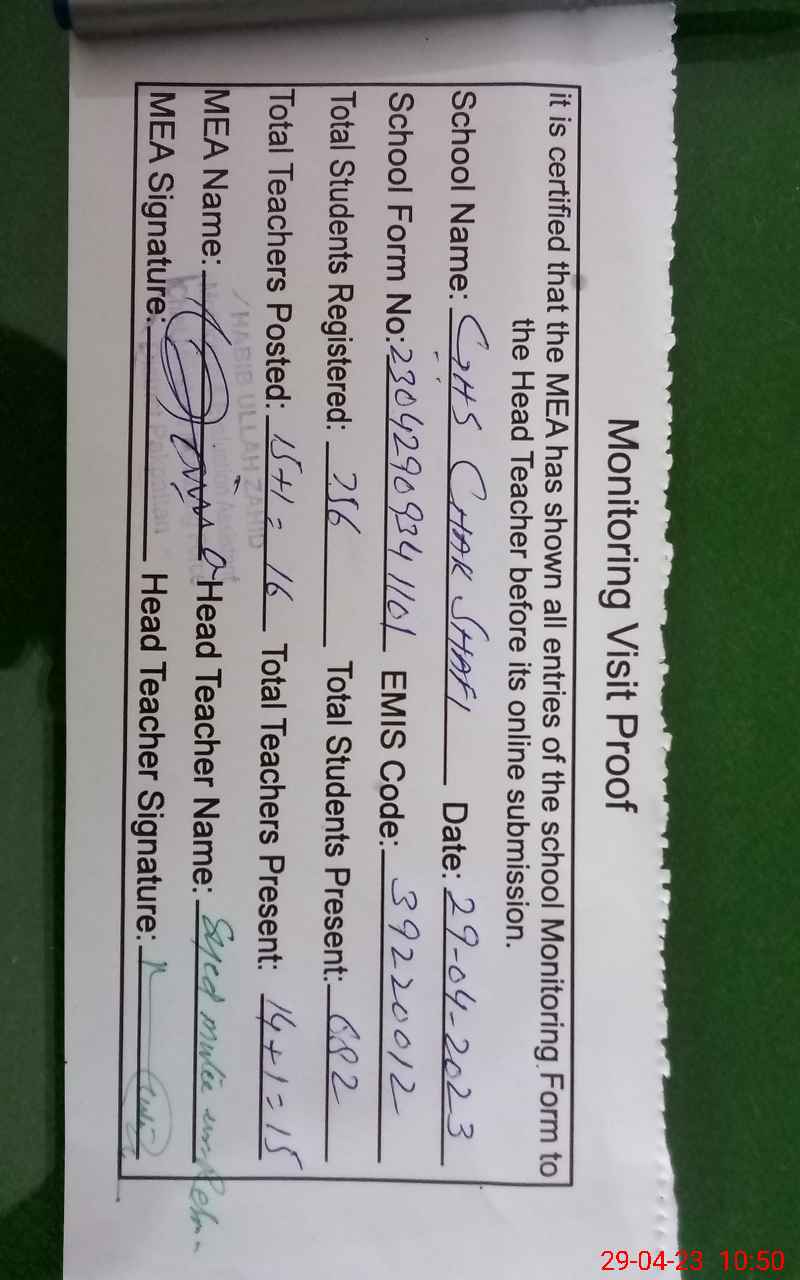 | EMIS Code: 39220012 | Name of School: GHS CHAK SHAFI | |||