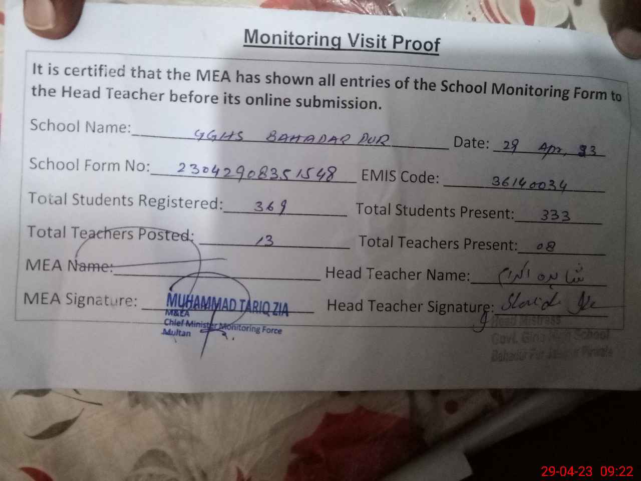 | EMIS Code: 36140034 | Name of School: GGHS BAHADAR PUR JALALPUR PIRWALA | |||
