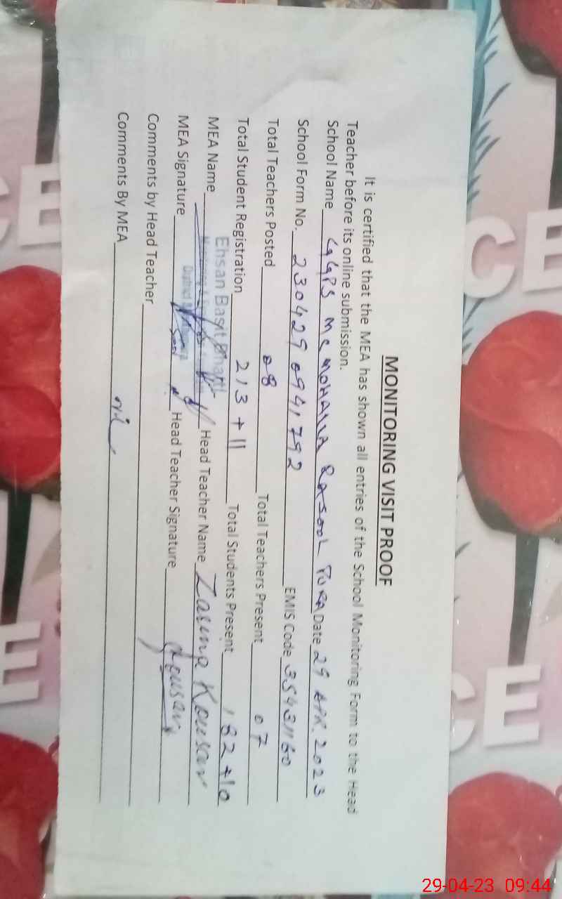 | EMIS Code: 35431160 | Name of School: GGPS MC MOHALLA RASOOL PURA | |||
