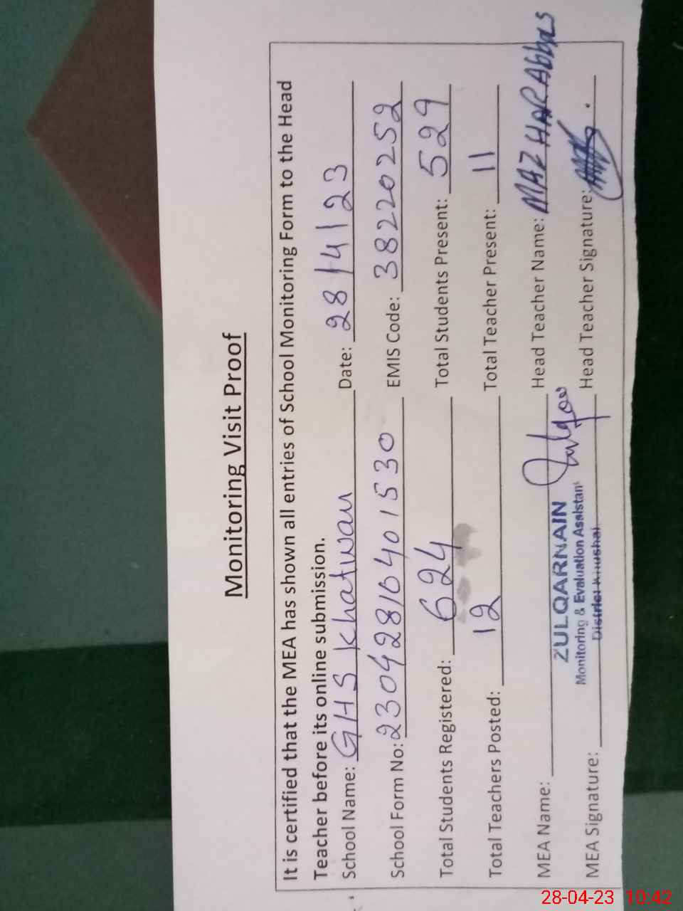 | EMIS Code: 38220252 | Name of School: GHS KHATWAN | |||