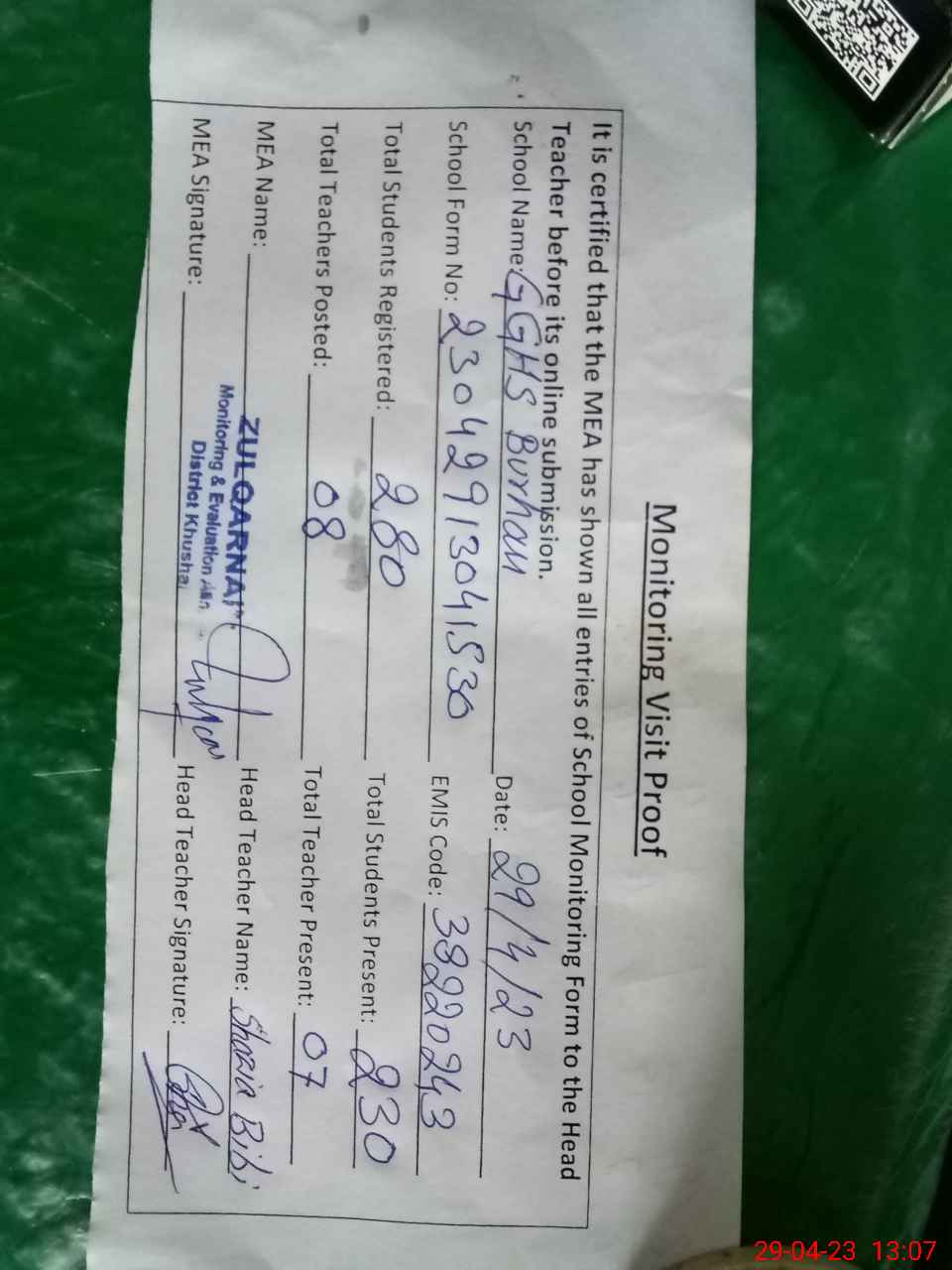 | EMIS Code: 38220243 | Name of School: GGHS BURHAN | |||