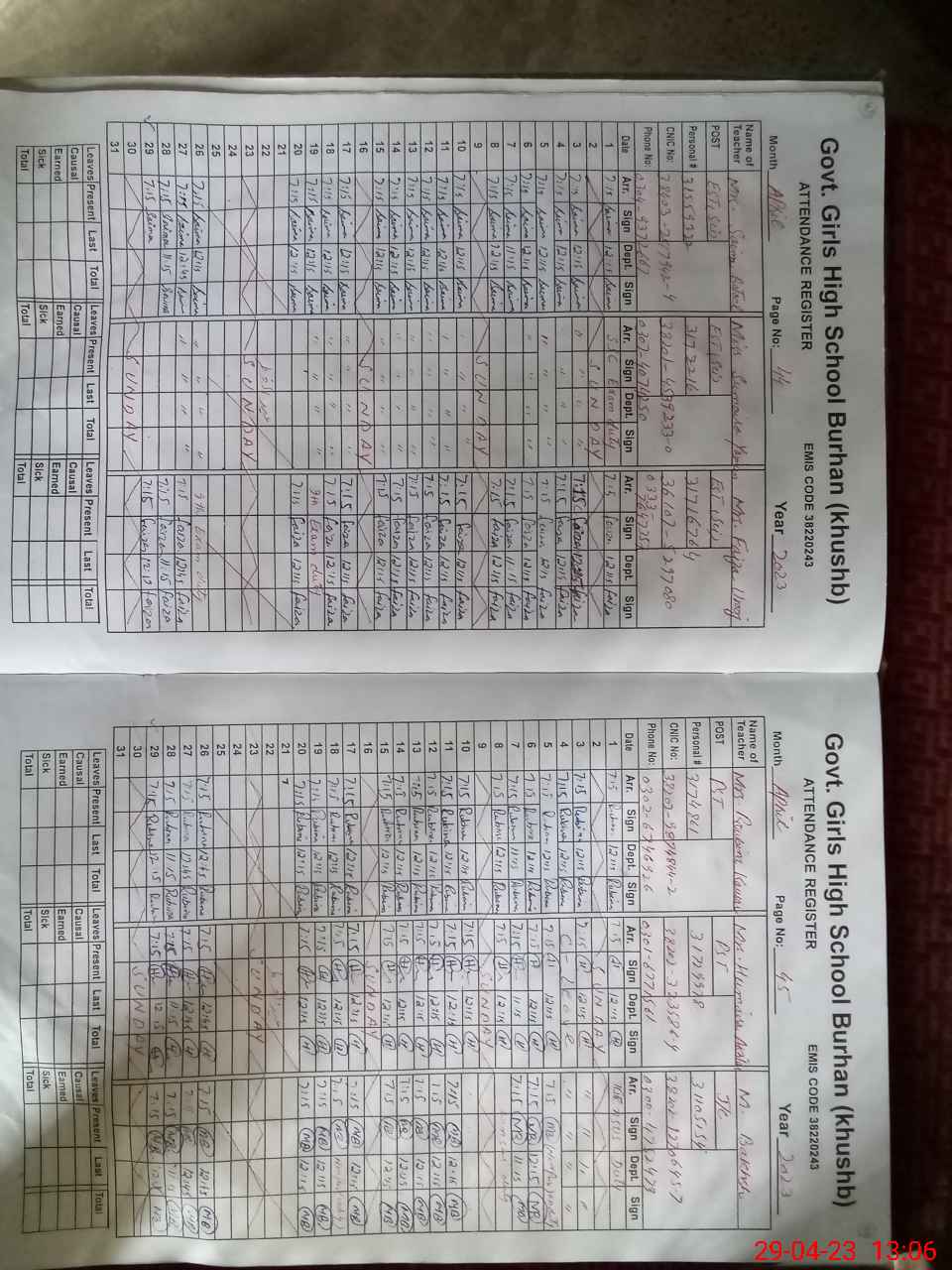 | Name: As**** Ba**** Designation: (School Headmaster's/Headmistress's) S.S.T.(Sci ) Phone/Cell Number: 03**** |