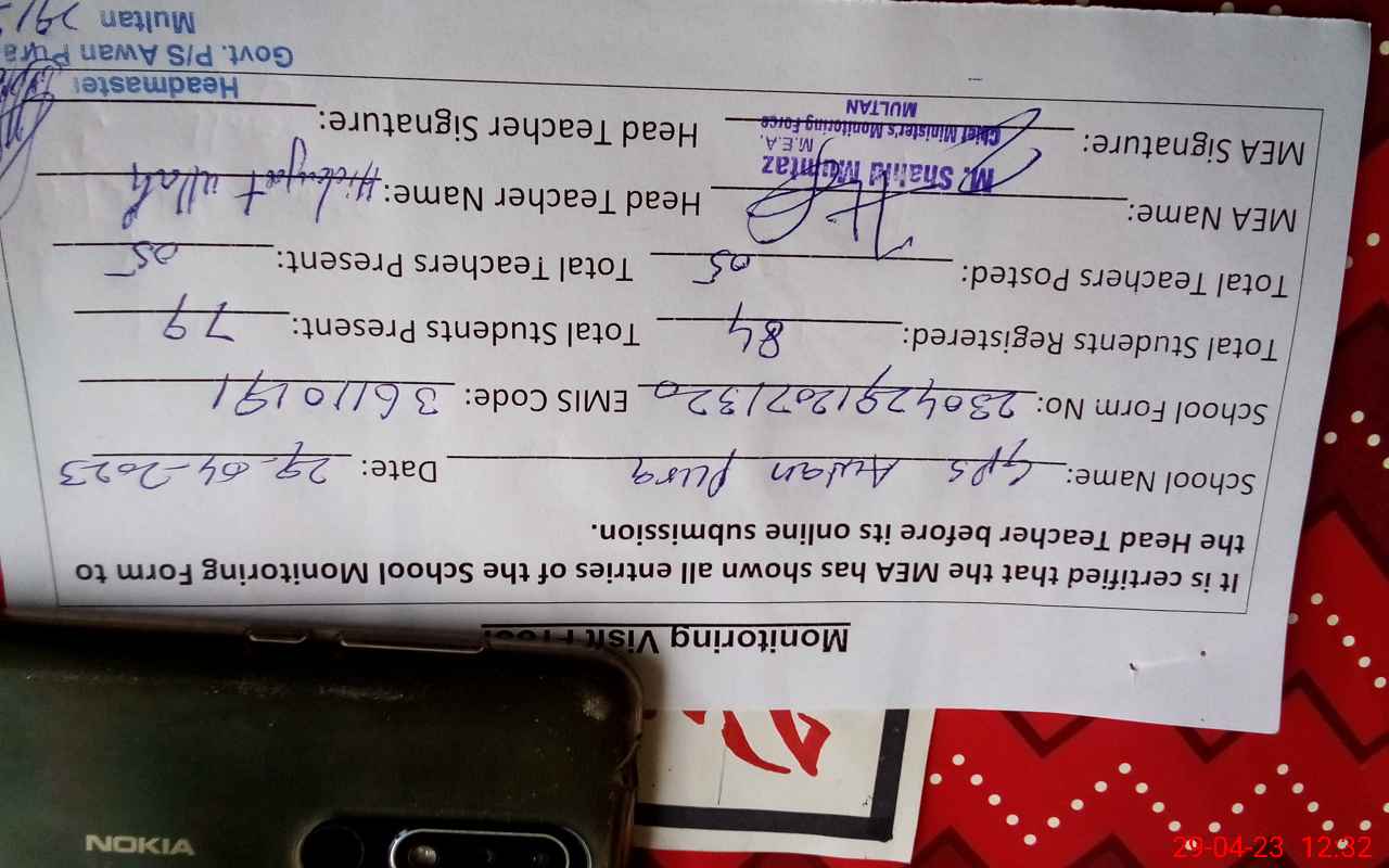 | EMIS Code: 36110191 | Name of School: GPS MC AWAN PURA | |||