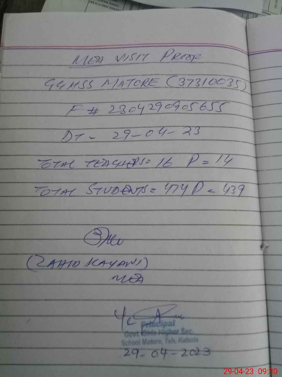 | Certified that this School was Inspected by the Undersigned MEA/DMO Today and the Information Stated Above is as Per Record. | |||||