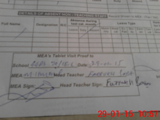 | Attendance Register | Head Teacher | MEA with School | Visit Proof |
